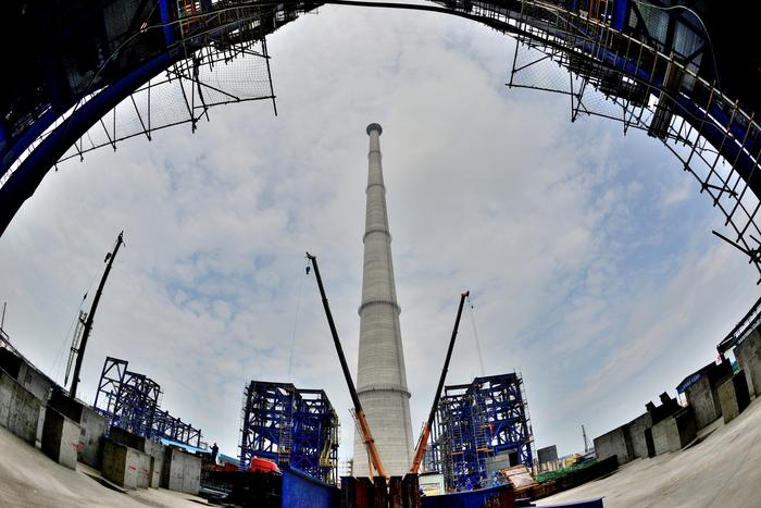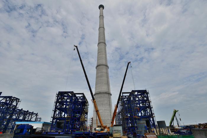 图为古雷炼化一体化项目汽电联产装置240米烟囱