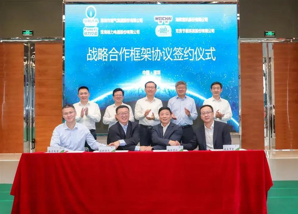 2020年11月16日下午,深圳燃气在深燃大厦与潍柴重机股份有限公司、珠海格力电器(66.450, -0.38, -0.57%)股份有限公司、双良节能系统股份有限公司签署战略合作框架协议,四方将以共同研发“一种适合于南方地区的气电互补清洁高效制冷机组(简称深燃慧能机)”为契机,开展大湾区综合能源领域深度合作。签约仪式由深圳燃气张小东总裁主持,杨光副总裁代表深圳燃气进行了签约。